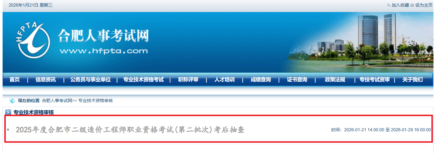 根据专业技术人员职业资格考试报名证明事项告知承诺制有关要求,拟于近期开展合肥考区2025年度二级造价工程师职业资格考试成绩合格人员(第2批次)践诺情况抽查工作,现将有关情况通知如下。